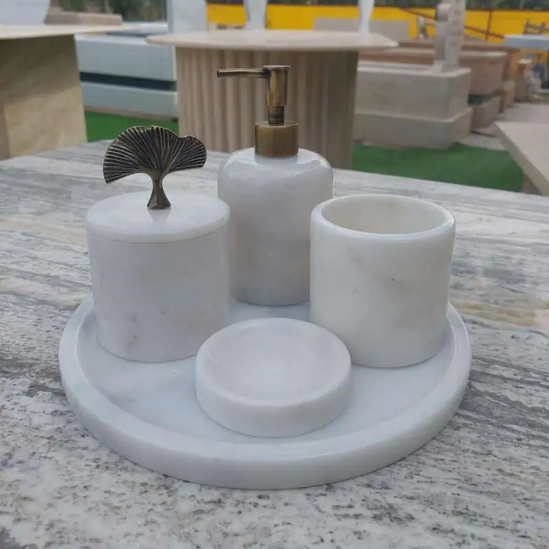 Sümeyra Marble Art Eskitme Beyaz Banyo Seti