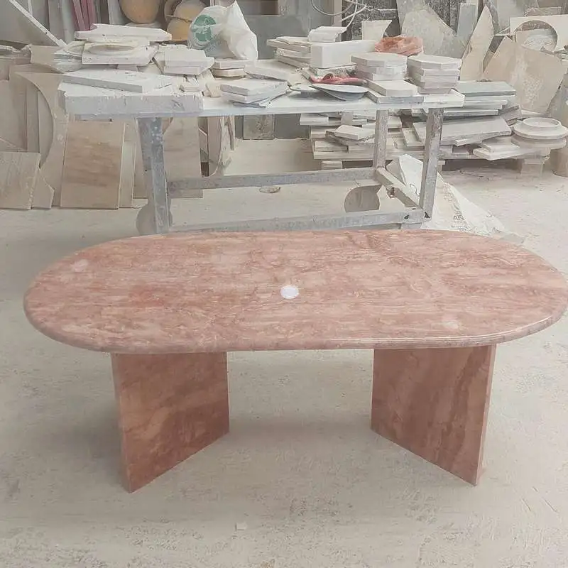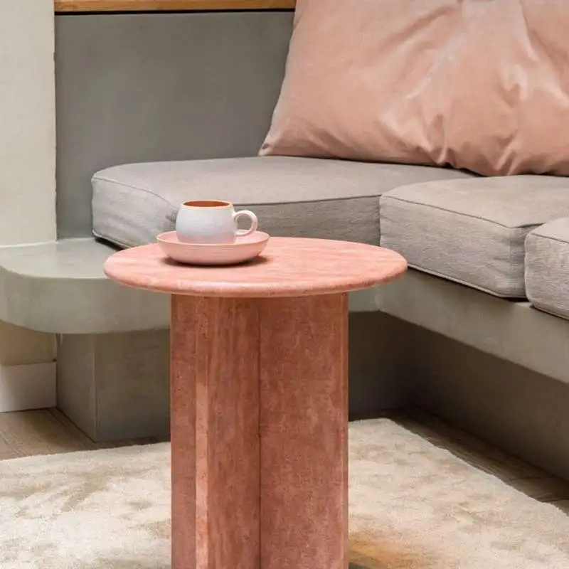 Sümeyra Marble Art Pembe Traverten Yan Sehpa